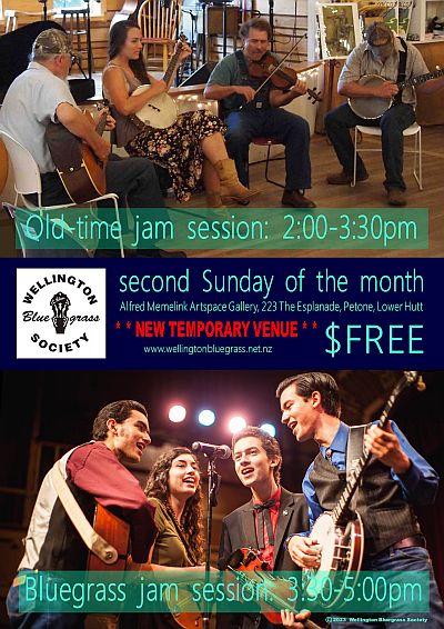 - Sunday 8th March – Old Time and Bluegrass Music – Memelink Artspace, 223 The Esplanade, Petone