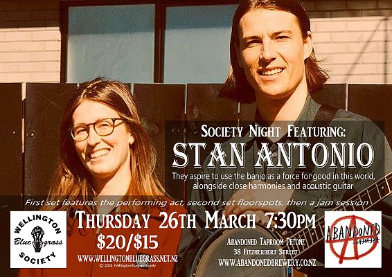 - Thursday 26th March, 7.30pm – Society night featuring Stan Antonio – Abandoned Taproom, Petone