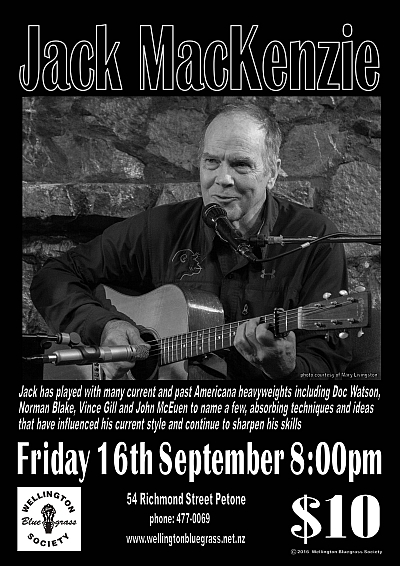 Jack has performed many times at Wellington Bluegrass Society in various forms: solo, duos, trios and bands. He unfailingly delights audiences with sparkling guitar work and great song choices.